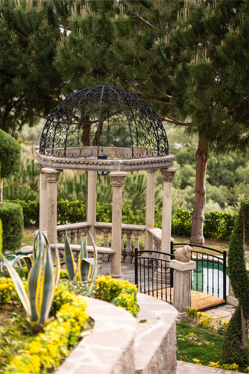 In the heart of our garden, the gazebo offers the perfect spot to enjoy a glass of wine as you watch the sun set.
