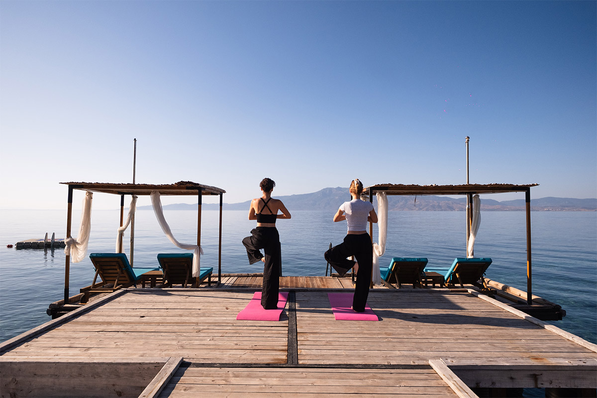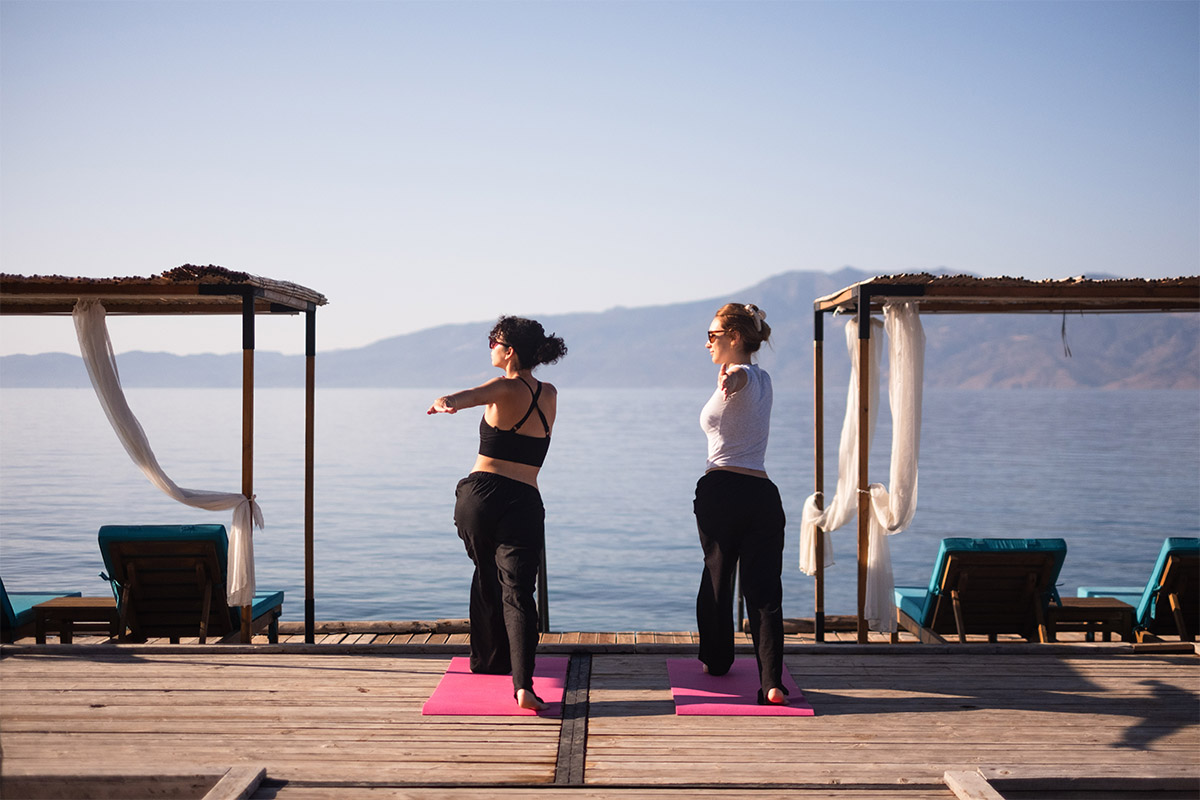 Assos'un temiz havası ve deniz manzarası eşliğinde yapılan seanslar, her seviyeye uygun ve rehber eşliğinde gerçekleşir.